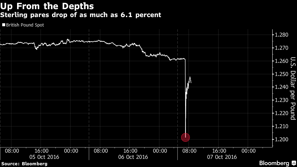 Wystarczyły dwie minuty chaosu w Azji, by wywołać tąpnięcie funta do minimum sprzed 31 lat. Zdaniem azjatyckich traderów spadek ten zostały wyolbrzymiony dodatkowo przez komputerowe zlecenie sprzedaży wykonywane przez zaprogramowane algorytmy. Deprecjacja funta rzędu 6,1% była najwyższa od czasu referendum w czerwcu (według Bloomberga, wykres tickowy wskazał minimum na 1,1841 na GBPUSD).