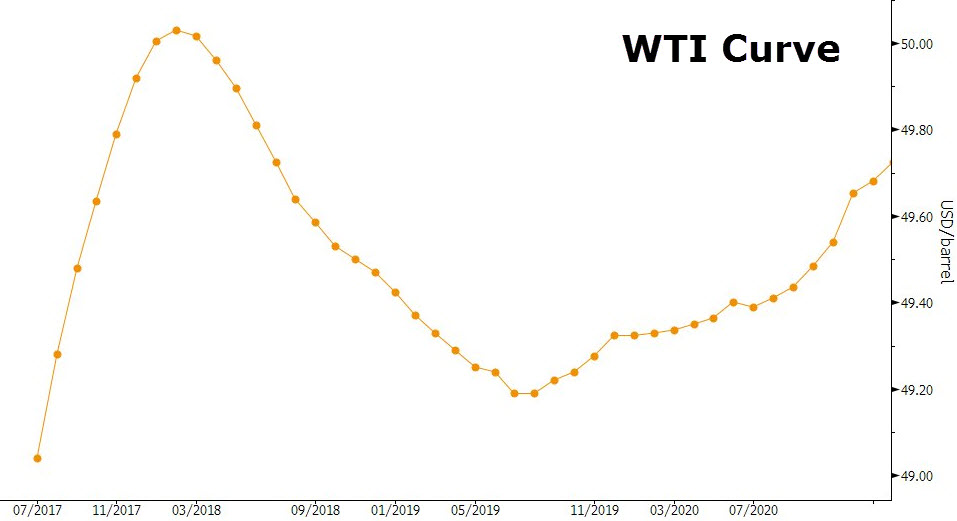 Krzywa terminowa ropy WTI, źródło: zerohedge, Bloomberg