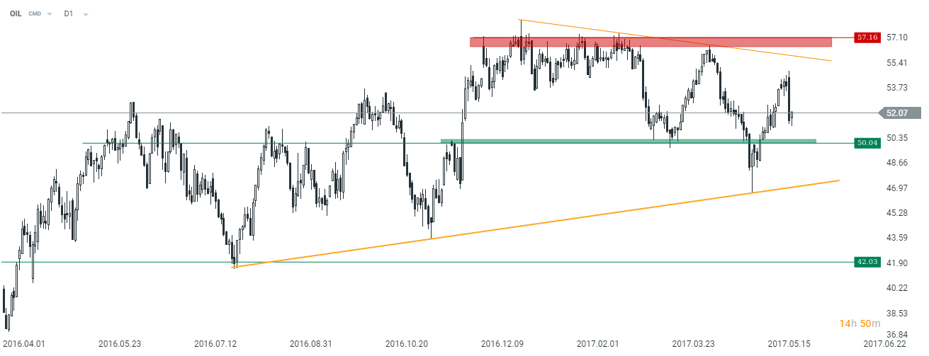 Oczywiście biorę pod uwagę, że w najbliższych miesiącach zapasy ropy na świecie mogą spadać, co jest podyktowane względami sezonowymi (wyższy popyt na paliwa). Niemniej kluczem dla OPEC pozostaje to, jak poziom zapasów zachowa się na jesieni, kiedy sezonowość przestanie pomagać. Zatem, jeśli OPEC nie uda się osiągnąć backwardation na krótszym końcu krzywej terminowej, wówczas w mojej ocenie rynek ropy pozostanie pod znaczącą presją podażową. Trzeba również brać pod uwagę, że prędzej czy później kartel będzie musiał zwiększać swoją produkcję w celu odzyskiwania traconego obecnie udziału rynkowego. To potencjalnie kolejny niedźwiedzi czynnik dla ropy.