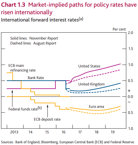 Mniejsza tolerancja na przestrzelenie celu inflacyjnego powoduje, że BoE może przyjąć (co de facto już poniekąd uczynił) znacznie mniej ekspansywną politykę monetarną. Wraz z podniesionymi projekcjami wzrostu gospodarczego wydaje się, że gdyby tylko mógł Mark Carney cofnąłby swoją decyzję z sierpnia. Niemniej tego już zrobić się nie da, stąd dzisiejszy zwrot w kierunku bardziej restrykcyjnej polityki, swoją drogą można przypuszczać, że BoE chciał również nieco podnieść notowania GBP, które mocno ważą na przyszłej ścieżce inflacyjnej (efekt pass-through).
