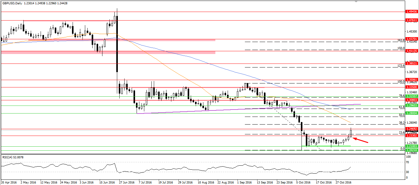 Informacja ta wywarła natychmiastową reakcję na rynku GBP, oczywiście wzrostową. Rynek postrzega tę decyzję jako szansę, iż parlament zakwestionuje proces Brexitu (przed referendum mieliśmy zdecydowany sprzeciw wyjścia z UE). Jednocześnie rząd będzie miał szansę złożyć apelację, która zostanie rozpatrzona w dniach 5-8 grudnia. Choć wciąż jest to bardzo grząski grunt można rzec, że na tym etapie brak zainicjowania procesu wyjścia z UE byłoby gorszym scenariuszem w długim terminie. W takim wypadku demokracja ległaby w gruzach (dzisiaj Sąd Najwyższy zatwierdził legalność przeprowadzonego w czerwcu referendum), co spowodować by mogło znacznie bardziej daleko idące konsekwencje, również natury systemu politycznego.
