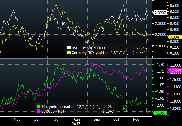 Rynek obligacji sugeruje spadki na EURUSD, źródło: Bloomberg, InsiderFX Research
