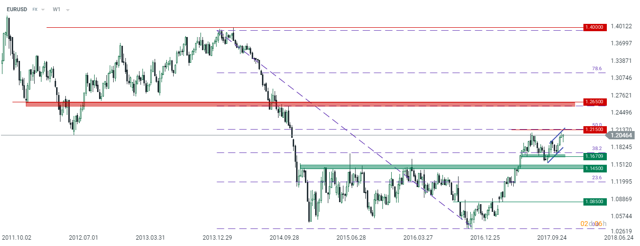 Niemniej jednak doniesienia te zostały zanegowane przez sam rząd Chin, który sklasyfikował komentarze Bloomberga jako nieprawdziwe i wprowadzające w błąd. W reakcji główna para walutowa ponownie znalazła się poniżej 1,1950. Niemniej jednak taka sytuacja trwała tylko kilka godzin, gdyż punktem zwrotnym (być może nawet w długim okresie) okazały się dość nieoczekiwanie minutki z grudniowego posiedzenia EBC. Bank zasugerował w nich, iż wraz z początkiem nowego roku czyt. 2018, może rozważyć pewną zmianą w forward guidance tj. jak ma wyglądać polityka pieniężna w horyzoncie dalszym niż do kolejnego posiedzenia. Nawet jeśli póki co jest to jedynie drobna sugestia, rynek (jak to ma w zwyczaju) zareagował dość żywo, pchając EURUSD ponownie powyżej 1,20. Podkreślmy, że choć Rada Prezesów już wcześniej sygnalizowała możliwą zmianę w retoryce, zgodnie z ewolucją perspektywy dla wzrostu gospodarczego oraz inflacji, to po raz pierwszy kwestia ta została oficjalnie zapisana i zakomunikowana rynkowi. W mojej ocenie pokazuje to, że EBC zaczyna realnie myśleć o dostosowaniu swojej retoryki, a żwawa reakcja rynku (skok euro i 5-punktowy ruch w górę na rentowności 10-letniej obligacji Niemiec) tylko pokazuje, jak w niewielkim stopniu wyceniona jest obecnie nieco bardziej jastrzębia polityka na starym kontynencie.