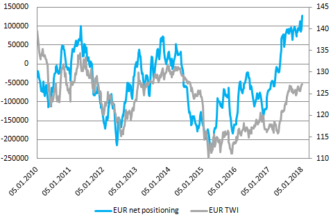 Tydzień rozpoczęliśmy od powrotu siły amerykańskiej waluty, co wydawało się mieć sens, biorąc pod uwagę fakt, że spekulacyjne pozycje długie netto na rynku wspólnej waluty znalazły się najwyżej w historii. Jednocześnie nie mieliśmy większych zmian w pozycjonowaniu na dolarze. Tym samym dywergencja ta jeszcze bardziej się powiększyła, przemawiając za choćby krótkoterminową korektą na mocno wykupionym rynku. Nie jest wykluczone, że taki schemat byłby kontynuowany, gdyby nie zaskakujące doniesienia ze strony agencji Bloomberga, ale o tym później. Kolejnym czynnikiem, który wciąż uzasadnia pewną korektę na EURUSD jest rynek stopy procentowej, aczkolwiek wskaźnik ten nie działa już tak dobrze, jak miało to miejsce w poprzednich trzech latach hossy na USD. Moim zdaniem większe znaczenie dla notowań obydwu walut będą miały teraz oczekiwane zmiany stóp procentowych, a tutaj przestrzeń do wzrostów po stronie EBC jest zdecydowanie większa.