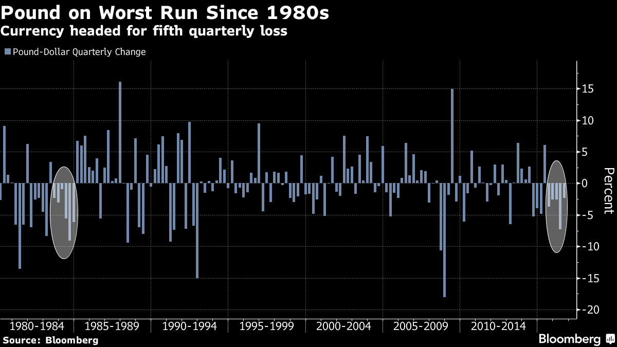 Pomimo znaczącego ożywienia na rynku brytyjskiej waluty w ciągu ostatnich tygodni w dalszym ciągu zmierzamy w kierunku najdłuższej spadkowej passy od 1984 roku! Tak słabe prosperowanie to oczywiście efekt tego, że waluta wzięła na siebie ciężar decyzji Brytyjczyków z czerwca.