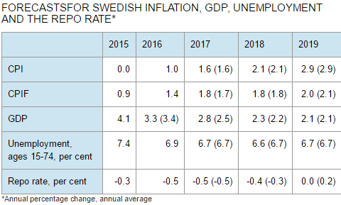 Prognozy dla inflacji, PKB i bezrobocia w Szwecji, źródło: Riksbank