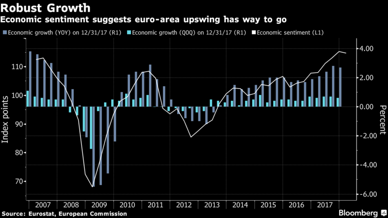 Wzrost PKB w strefie euro w Q4 okazał się najszybszy od okresu sprzed kryzysu, źródło: Bloomberg, InsiderFX Research