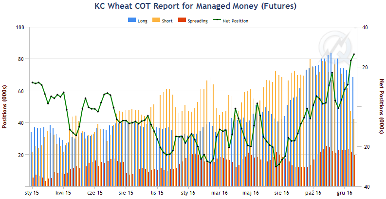 W przypadku zbóż warto zwrócić również uwagę, że piątkowe dane o pozycjonowaniu money managerów pokazały kolejny przyrost pozycji długiej netto w przypadku gatunku Hard Red Winter (HRW) – najbardziej znaczący się rodzaj pszenicy ozimej w USA. Pokazuje to zatem wiarę rynku w potencjalne wzrosty ceny zboża. Z drugiej strony w przypadku gatunku Soft Red Winter (SRW) pozycja netto niemalże nie zmieniła się, znajdując się w dalszym ciągu blisko wieloletnich minimów. Jeśli chodzi o kukurydzę, pozycjonowanie wciąż lekko rośnie, co sprawia, że obydwa zboża wydają się godne uwagi co do kupna.