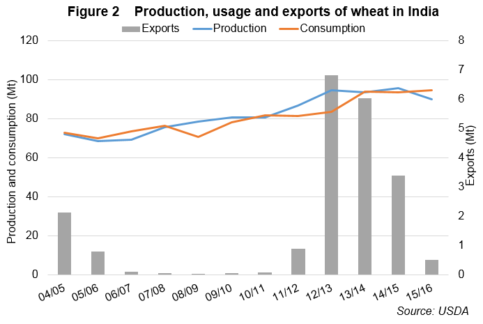 Indyjski Departament szacuje, że popyt przewyższy krajową podaż o około 3,3 mln ton, o ile produkcja nie wzrośnie mocniej niż się to obecnie prognozuje. Ponadto zakłada się, że cło importowe pozostanie na poziomie 10%. Ewentualny jego wzrost mógłby kreować problem z zaspokojeniem popytu i szukaniem pewnych alternatyw, choćby czasowych. Byłoby to niekorzystnym czynnikiem dla ceny zboża.