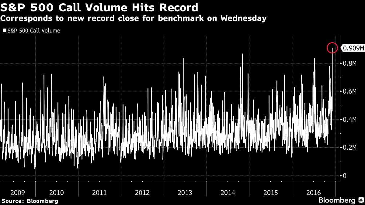 Ilość opcji Call na SP500, źródło: Bloomberg