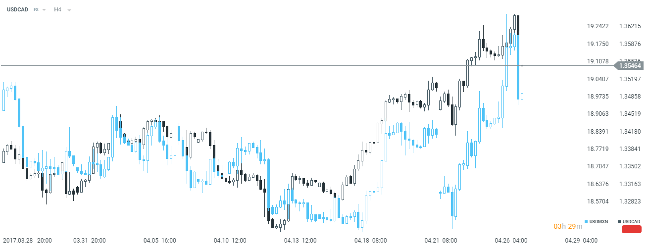 W reakcji na te doniesienia notowania MXN oraz CAD wyraźnie traciły do USD. Na rynku USDCAD ujrzeliśmy najwyższe poziomy od wielu miesięcy i kolejną próbę przełamania 1,36. Więcej na temat NAFTA i płynącego z tego ryzyka dla gospodarki kanadyjskiej pisałem wczoraj.
