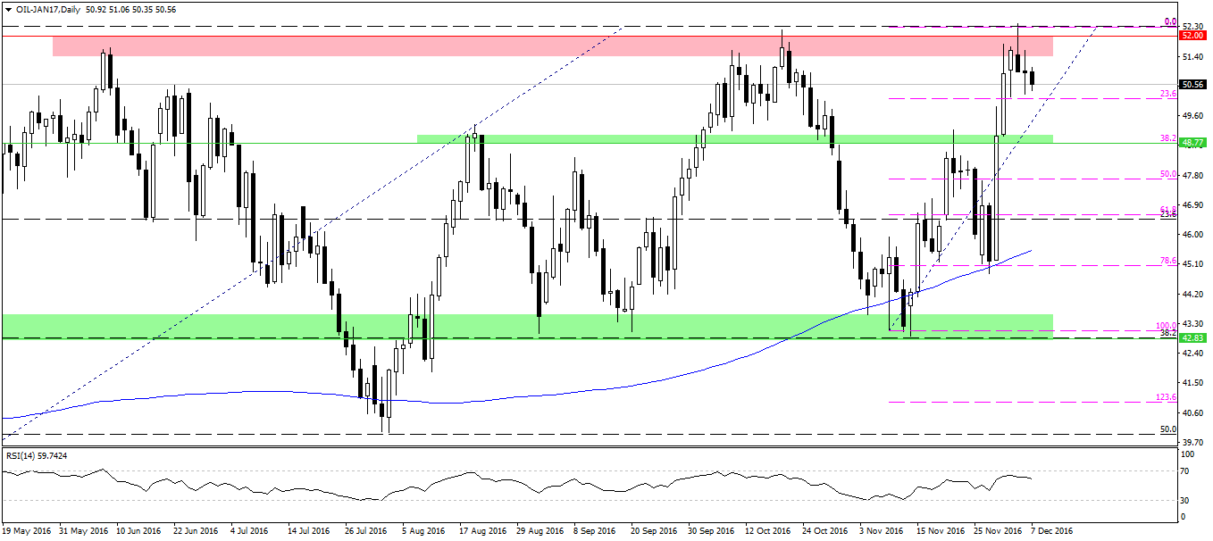 W najbliższą sobotę przed nami kolejne spotkanie w Wiedniu. Tym razem głównym punktem zainteresowania jest to, ile krajów spoza kartelu zdecyduje się dołączyć do cięcia produkcji ropy. Do tej pory zobowiązała się jedynie Rosja w wielkości 300 tys. bpd. Dlatego też potencjalny opór innych państw może być czynnikiem ryzyka dla ropy na otwarciu w przyszłym tygodniu. Z drugiej strony, jak już wielokrotnie wspominałem, kluczem będzie to, czy zobowiązania producentów będą przestrzegane. Niemniej dowiemy się o tym najprędzej na początku lutego, kiedy poznamy figury za styczeń (porozumienie z zeszłego tygodnia wchodzi w życie od nowego roku).
