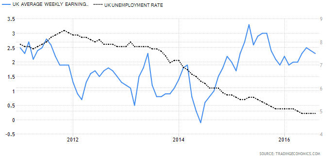 Dzisiejszego dnia poznaliśmy kolejną paczkę danych z Wielkiej, tym razem z rynku pracy. O ile stopa bezrobocia pozostała na poziomie 4,9%, o tyle otrzymaliśmy mniej wniosków o zasiłek dla bezrobotnych niż spodziewał się rynek, co było rzecz jasna pozytywnym sygnałem – kolejnym, po głosowaniu ws. Brexitu.
