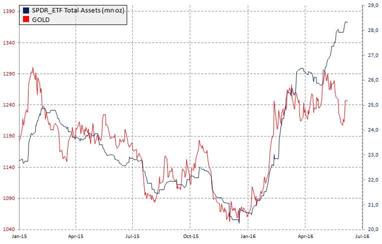 Zdecydowanie tak, ponadto należy pamiętać o ostatnich silnych przepływach kapitałowych w kierunku tego rynku. Zarówno ze strony dużych indywidualistów jak Soros (ograniczenie ekspozycji na amerykańskie akcje w celu nabycia ekspozycji na rynek złota), jak i funduszy ETF, które odpowiadały za silny popyt na metal w pierwszym kwartale tego roku.
