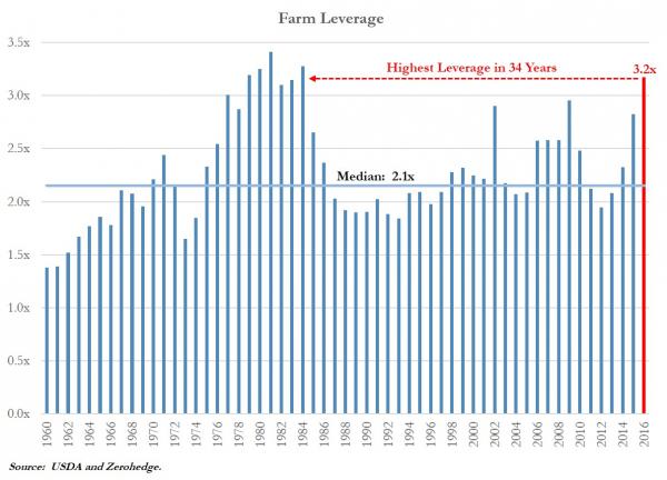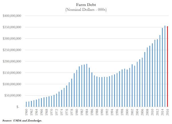 W ostatnich miesiącach coraz więcej mówi się o problemach amerykańskich farmerów, przede wszystkim tych dotyczących zadłużenia. Olbrzymia część żywności produkowana w USA znalazła się pod sporą presją w tym roku z racji niższej konsumpcji w Chinach wynikającej z zarówno słabszego popytu jak i relatywnie wysokiego kursu dolara (spadek siły nabywczej importerów).