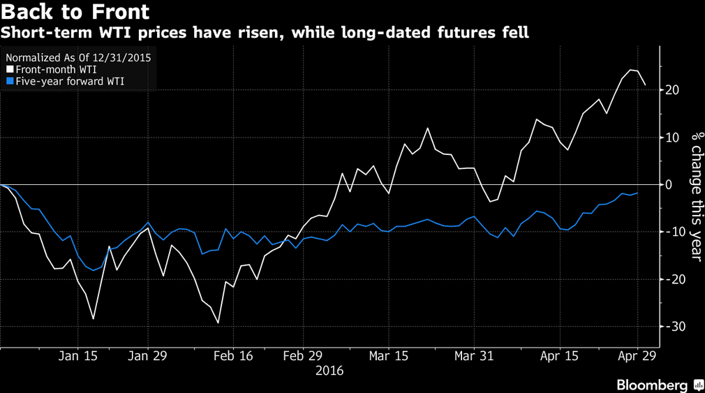 Niemniej jednak wychodząc nieco w przyszłość, możemy się trochę rozczarować. Podczas gdy bieżące kontrakty terminowe na dostawy surowca we względnie krótkim terminie mocno rosły w ostatnich tygodniach, o tyle kontrakty forward z późniejszym terminem dostawy spadały w analogicznym okresie. Dla przykładu 5-letni kontrakt forward spadł od początku roku -2,6%, podczas gdy kontrakt o najkrótszym terminie wygasania wzrósł 21%. Skąd taka różnica? Inwestorzy po prostu dyskontują, że wraz z rosnącą ceną surowca produkcja z łupków może odbijać, ograniczając tym samym rajd wzrostowy.