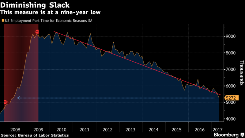Spoglądając na powyższy wykres rzeczywiście znajdujemy się już bardzo blisko przedkryzysowych poziomów, jeśli chodzi o liczbę pracujących na niepełny etat (jeden z mierników skali zastoju na rynku pracy). Kłopotem są jednak płace, o czym pisałem już obszernie wcześniej wskazując, iż jest to jednak problem bardziej natury globalnej.
