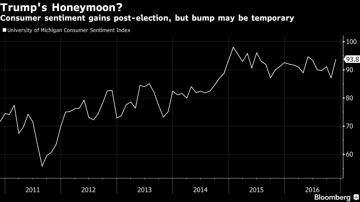 Jakby tego było mało, zaufania konsumentów wzrosło w listopadzie więcej niż pierwotnie oczekiwano pokazując, że Amerykanie wcale nie boją się prezydentury Trumpa, stając się bardziej optymistyczni odnośnie do swoich finansów i gospodarki. Należy podkreślić, że odczyt po rewizji jest wymowny, gdyż wstępny odczyt nastąpił przed wyborami, zaś finalny dwa tygodnie po ich zakończeniu.