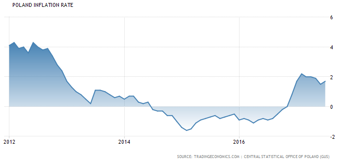 Po pierwsze, realny wzrost gospodarczy wynieść ma w 2018 roku 3,8% co wydaje się jak najbardziej możliwym do osiągnięcia wynikiem. Jak argumentował w ostatniej analizie makro dotyczącej polskiej gospodarki spodziewam się, iż wzrost gospodarczy będzie w kolejnych kilku kwartałach mocniej wspierany przez inwestycje, przy czym konsumpcja powinna wykazywać ograniczą presję wzrostową w przyszłym roku. Mówiąc w skrócie, nie jest wykluczone, że szczyt koniunktury gospodarczej przypadnie na przełom 2017 i 2018 roku, kiedy to konsumpcja będzie jeszcze na względnie wysokim poziomie, zaś inwestycje mocniej dadzą o sobie znać.