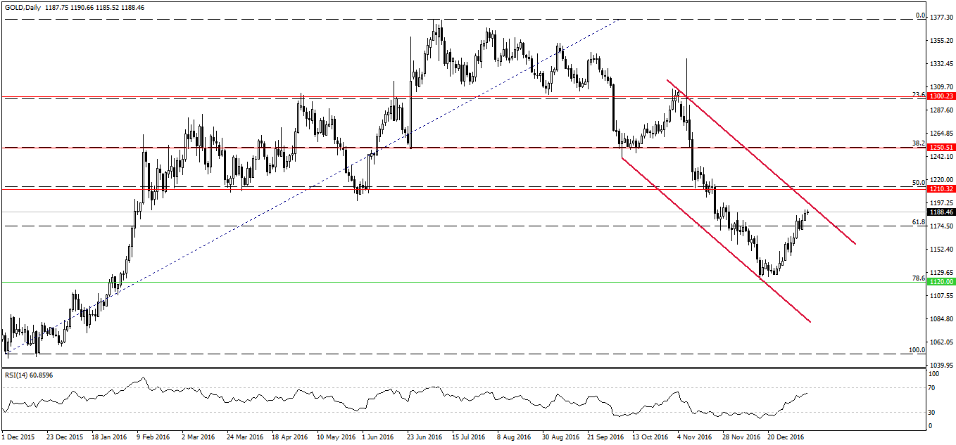 Od strony technicznej na rynku złota widzimy powolne docieranie do oporu w postaci górnego ograniczenia kanału trendowego. Ewentualne jego przełamanie może pchnąć ceny nawet poza poziom 1210$ za uncję. Wybicie z kanału powinno również generować większy popyt na złoto ze strony stricte „techników”, czyli inwestorów opierających się głównie na analizie technicznej.