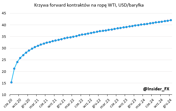 Krzywa kontraktów forward na ropę WTI, źródło: Bloomberg, InsiderFX Research