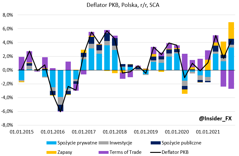 Dekompozycja deflatora PKB, źródło: Eurostat, InsiderFX Research