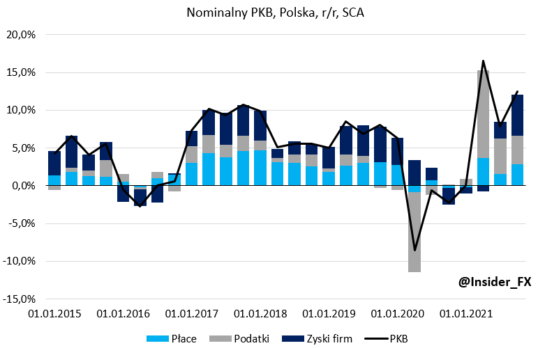 Roczna dynamika nominalnego PKB Polski od strony dochodowej, źródło: Eurostat, InsiderFX Research