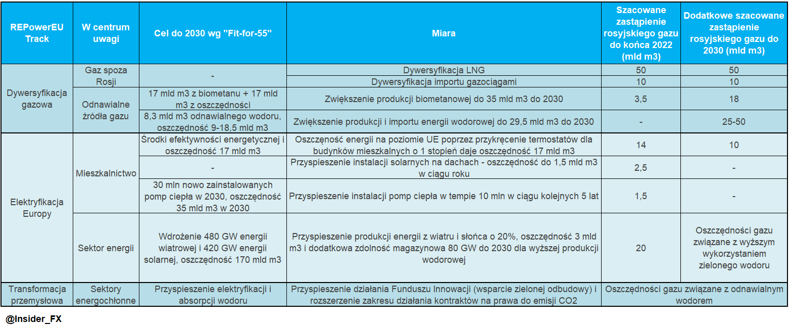 KE dobitnie podkreśla również istotność rozbudowy infrastruktury gazowej w krajach UE. Mowa tutaj nie tylko o budowie nowych terminali LNG, ale także wewnątrzunijnego systemu gazociągowego (przede wszystkim lepsze połączenie z półwyspem iberyjskim). Według przedstawionej strategii, UE mogłaby zredukować konsumpcję gazu aż o 1/3 do 2030 roku. Oznaczałoby to redukcję popyt o ponad 100 mld m3. Co więcej, w połączeniu z dywersyfikacją źródeł energii, wyższymi oszczędnościami oraz elektryfikacją, istnieje potencjał do redukcji konsumpcji o 155 mld m3 (wielkość importu gazu z Rosji). Strategia ta jest również spójna z planem cięcia emisji gazów cieplarnianych o co najmniej 55% do końca 2030, a także neutralnością klimatyczną do 2050 roku (Fit-for-55).