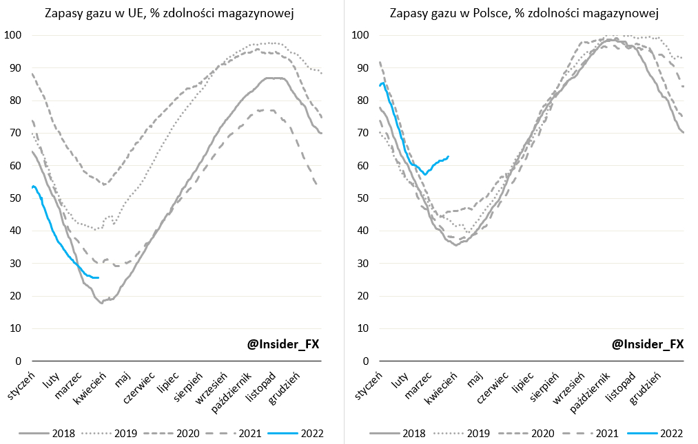 Odbudowa zapasów w sezonie letnim jest na pewno krytyczna pod względem przetrwania kolejnej zimy z ograniczonym importem rosyjskiego gazu. W przypadku Polski, od stycznia 2023 roku oznacza to już życie bez importu jakiejkolwiek ilości gazu od Gazpromu. Osiągnięcie wysokich zapasów powinno również przyspieszyć z uwagi na wzrost importu LNG z USA, a także innych państw.