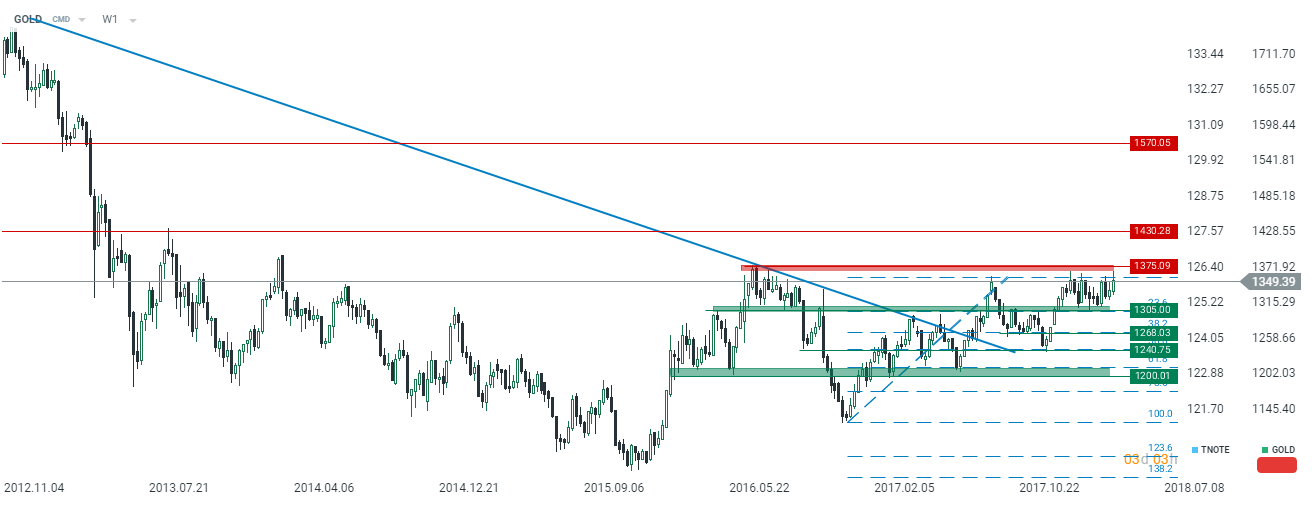 Złoto, W1, źródło: xStation5, InsiderFX Research