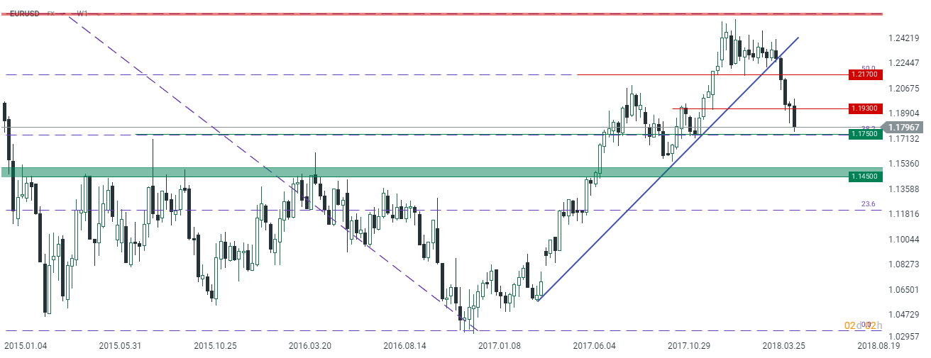 Czego w związku z tym oczekiwać na głównej parze walutowej? Choć zeszłotygodniowa świeca mogła dawać nadzieje na zakończenie korekty spadkowej, to wiele wskazuje na to, że z takim ogłoszeniem przyjdzie nam jeszcze trochę poczekać. Do końca bieżącego tygodnia warto zwracać uwagę na 1,1750, a w przypadku jego przełamania na 1,1450/00. To właśnie drugi z wymienionych poziomów stanowi kluczowe, długoterminowe wsparcie na EURUSD. Z racji na ww. powody wciąż podtrzymuję swój pogląd, iż dolar powinien ostatecznie powrócić do spadków w kolejnych miesiącach, na czym powinny skorzystać zarówno wspólna waluta jak i polski złoty.